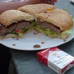 2005, 1.8.: Riesenburger bei Uncle Sams Diner in Heppenheim